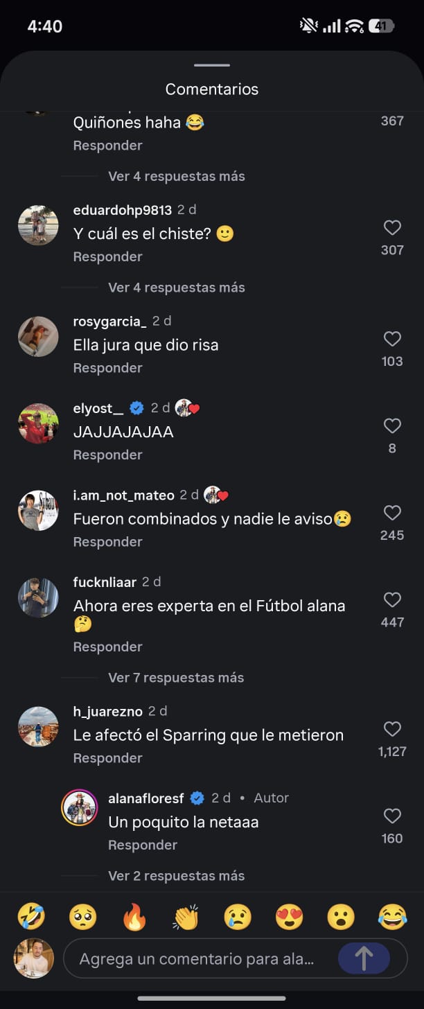 Alana Flores se grabó mientras veía el partido y en tono de broma preguntó por qué no le pasaban el balón al que estaba vestido de negro, haciendo referencia al árbitro; el chiste fue replicado por otros influencers.