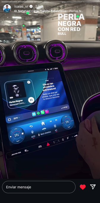 De fondo sale el estéreo del coche y la canción que estaba era 'Perlas Negras' de Natanael Cano y Gabito Ballesteros.