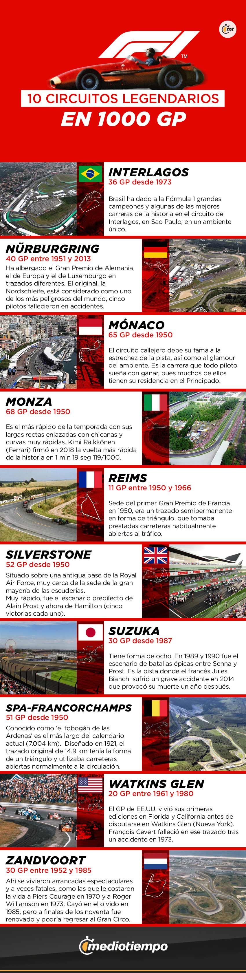 Previo al Gran Premio de China, el número 1000 de la historia en Fórmula Uno, te dejamos los 10 circuitos que le dieron grandeza a los monoplaza y sus pilotos.