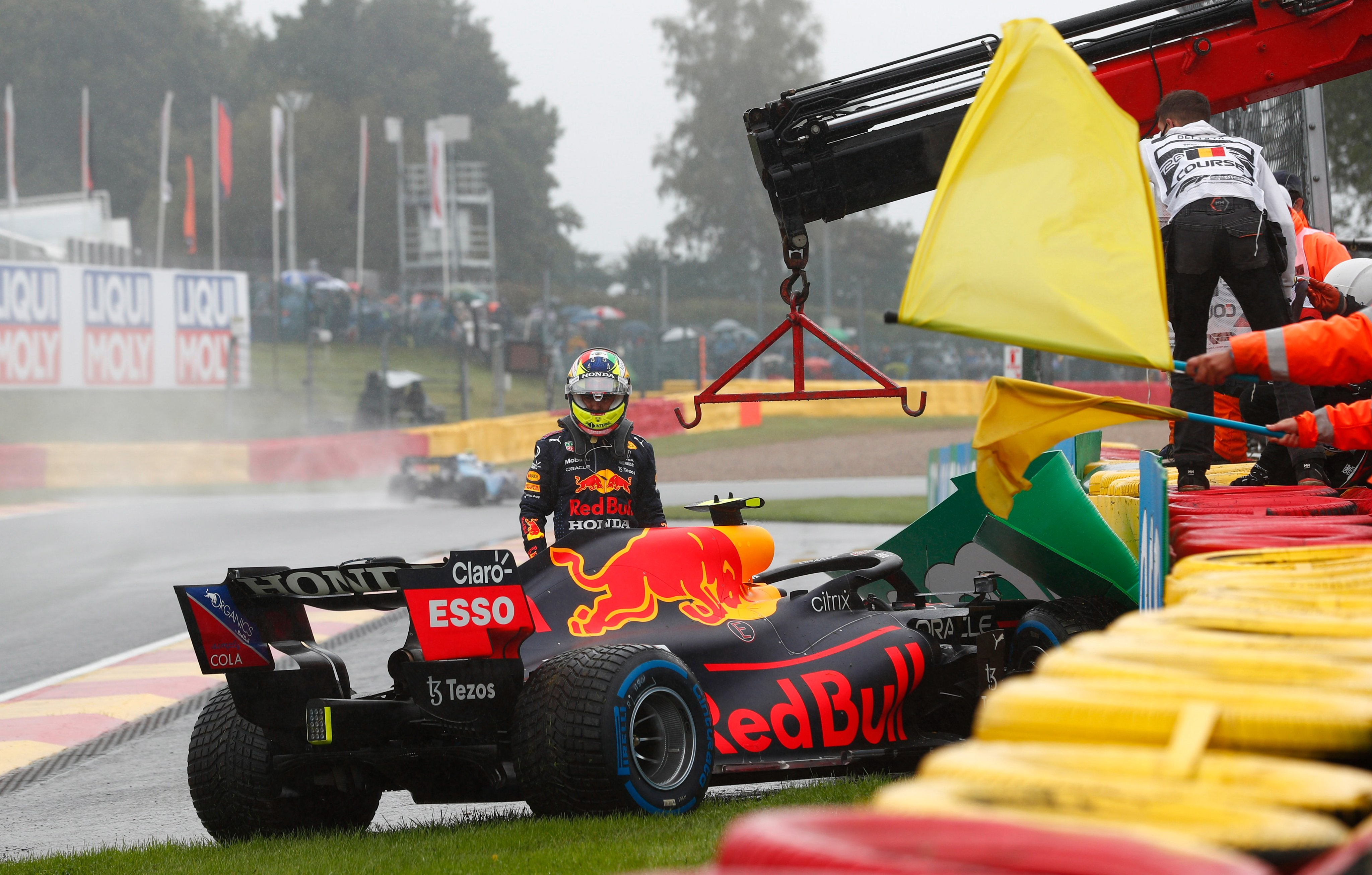 Mal y de malas para el piloto mexicano Sergio Pérez, quien después de quedar fuera en la última carrera por un incidente en la primera vuelta del Gran Premio de Hungría, este domingo en la reactivación de la temporada 2021, quedó provisionalmente fuera del Gran Premio de Bélgica tras sufrir un accidente en las vueltas de calentamiento.