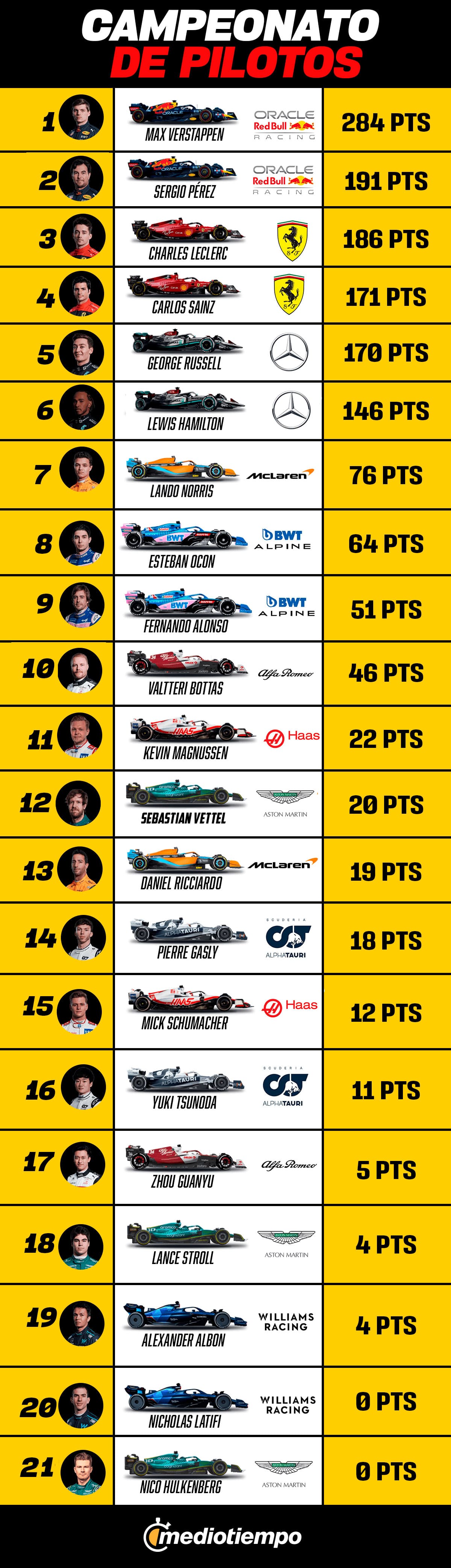 Tabla del Campeonato de Pilotos de la Fórmula 1 2022