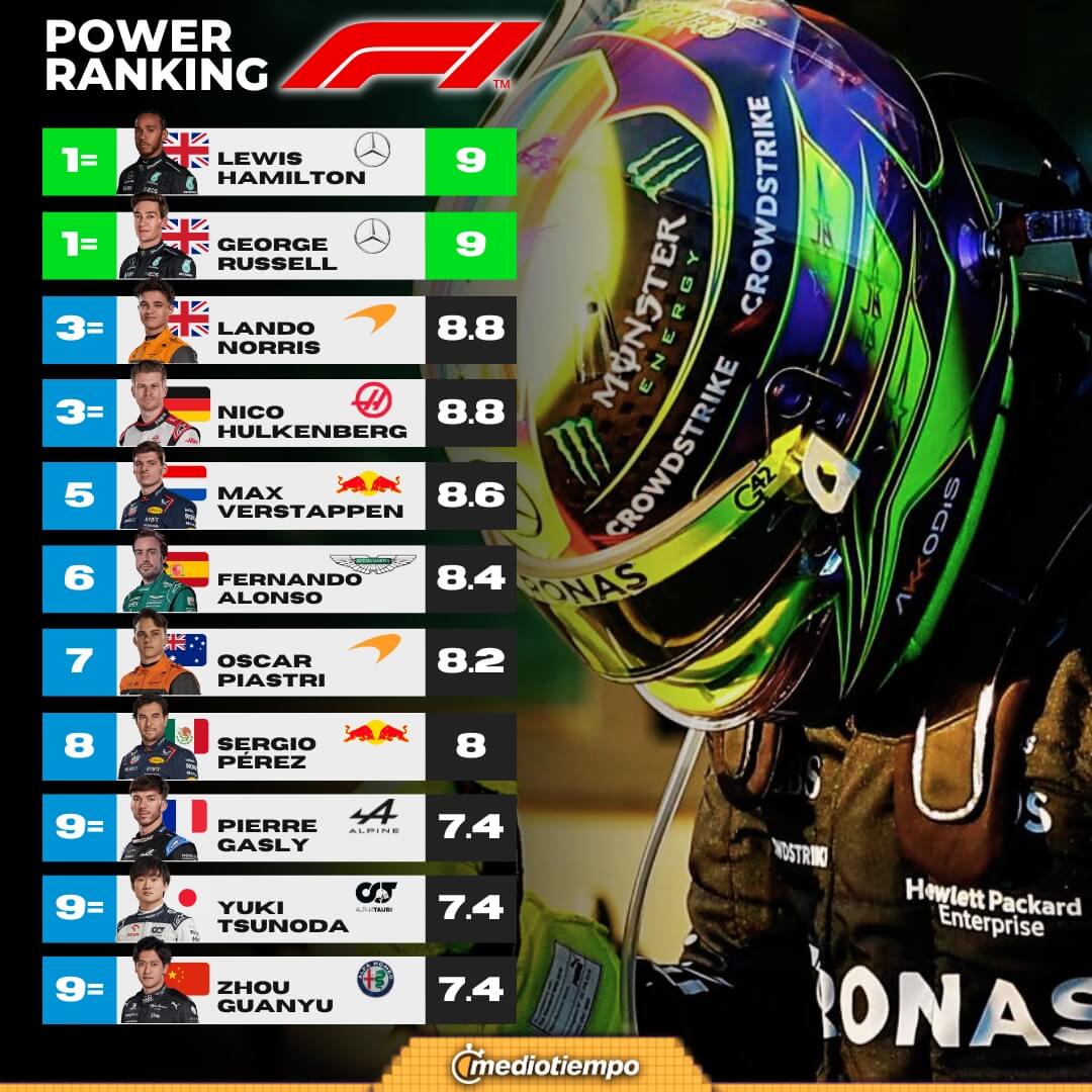 En el tradicional Power Ranking, que se da competencia tras competencia, tampoco Max Verstappen fue considerado el mejor y sí lo fue el británico Lewis Hamilton, quien obtuvo su primer podio del año al quedarse en la segunda posición.