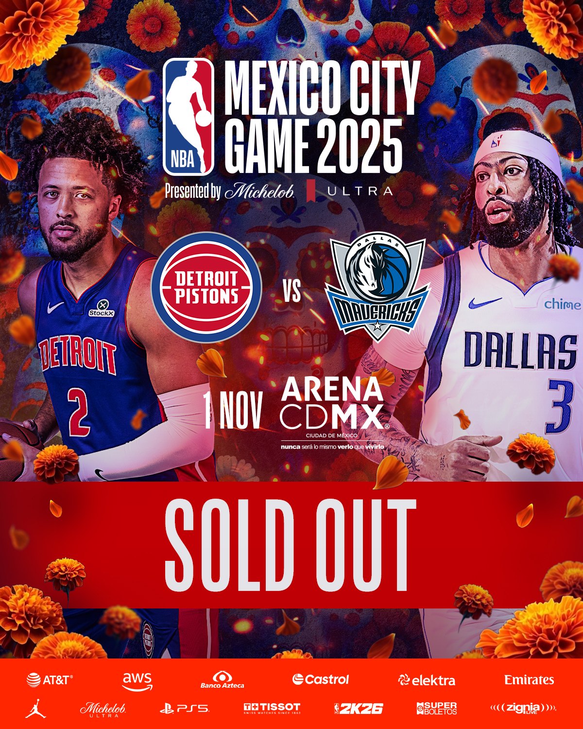 La NBA anunció que ya no hay boletos disponibles a exactamente nueve días de que se celebre el partido; el próximo sábado 1 de noviembre, Pistons y Mavericks prometen un espectáculo de alto nivel que fortalezca el vínculo con la fiel afición mexicana, que no falla en cada edición.