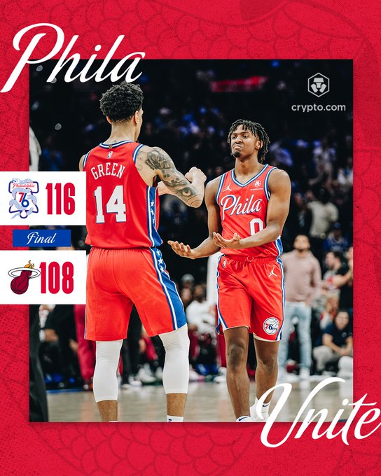 En Filadelfia, el astro James Harden anotó 31 puntos y el camerunés Joel Embiid tuvo 24 tantos y 11 rebotes para que los locales Sixers vencieran 116-108 al Miami Heat para igualar 2-2 esta serie de Semifinales de la Conferencia Este.