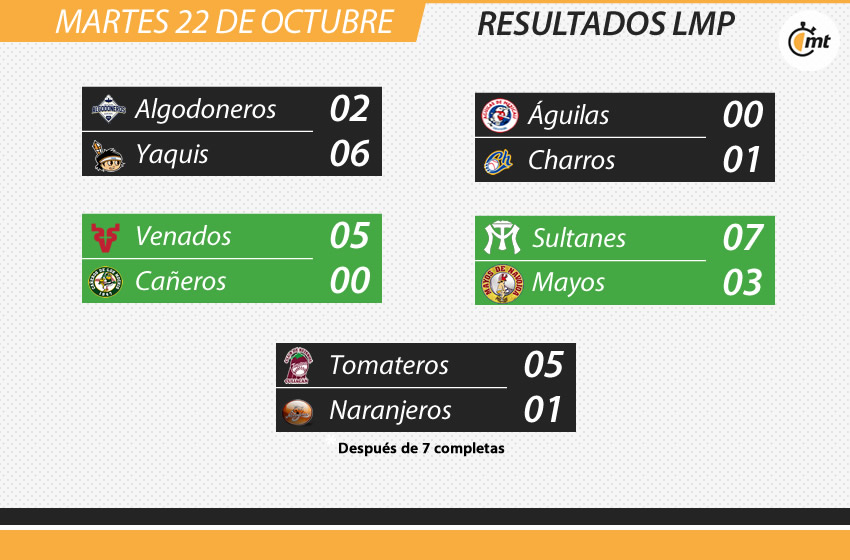 Resultados de la Liga Mexicana del Pacífico del 22 de octubre