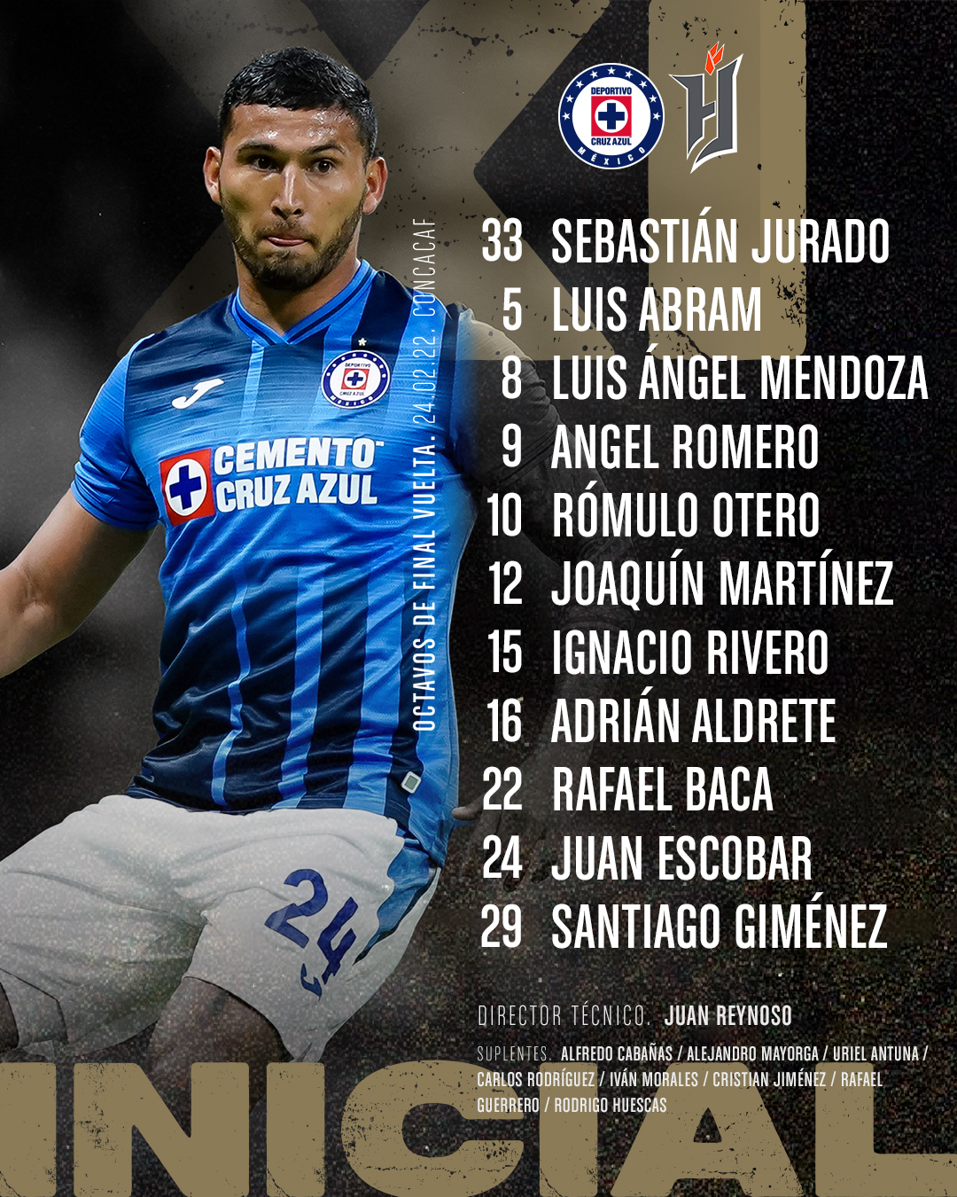 Sebastián Jurado (P); José Joaquín Martínez, Juan Escobar, Luis Abram, Adrián Aldrete; Rafael Baca, Ignacio Rivero, Rómulo Otero, Luis Ángel Mendoza; Santiago Giménez y Ángel Romero.