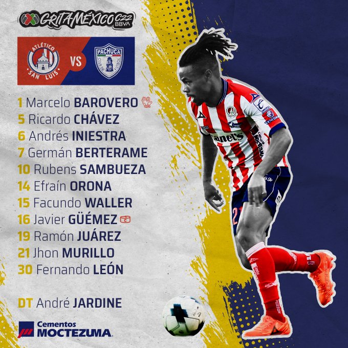 ATLÉTICO SAN LUIS: Barovero, Juárez, León, Chávez, Iniestra, Sambueza, Orona, Waller, Güemez, Berterame, Murillo.