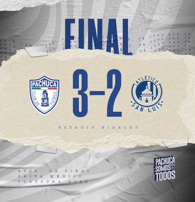 Pachuca (4) 2-1 (3) San Luis.#LigaBBVAMX ⚽ #GritaMéxicoC22 pic.twitter.com/hzXozk8W0x