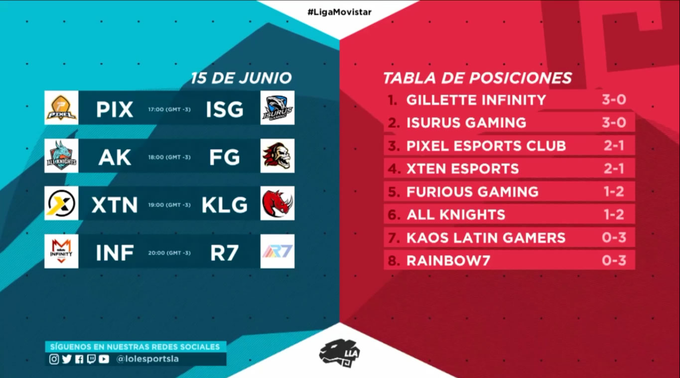 Segundo día para terminar la primera súper semana de la Liga Movistar Latinoamérica; aquí puedes averiguar si Isurus e Xten consiguieron asegurar la semana perfecta en contra de sus rivales Furious gaming y Gillete Infinity.