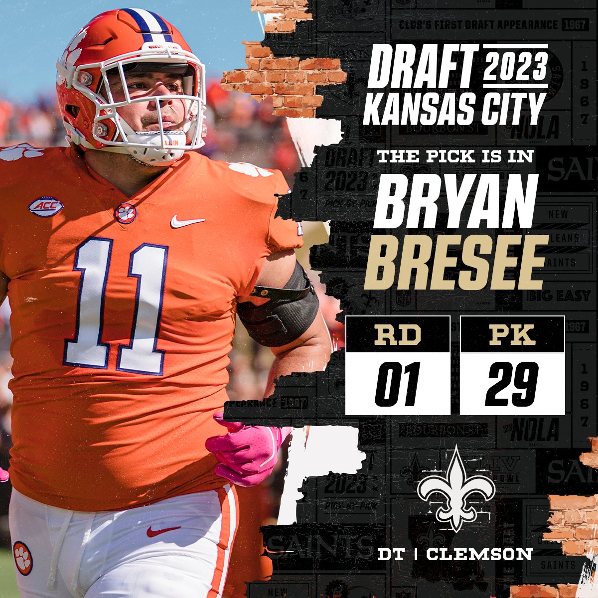 ¡Otro tackle defensivo! Desde el Pick 29, Bryan Bresee llega a los New Orleans Saints