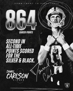 Carlson aún tiene por delante a Sebastian Janikowski, quien sumó 1799 puntos, por lo que aún hay mucho camino por recorrer para el actual pateador de los Malosos.