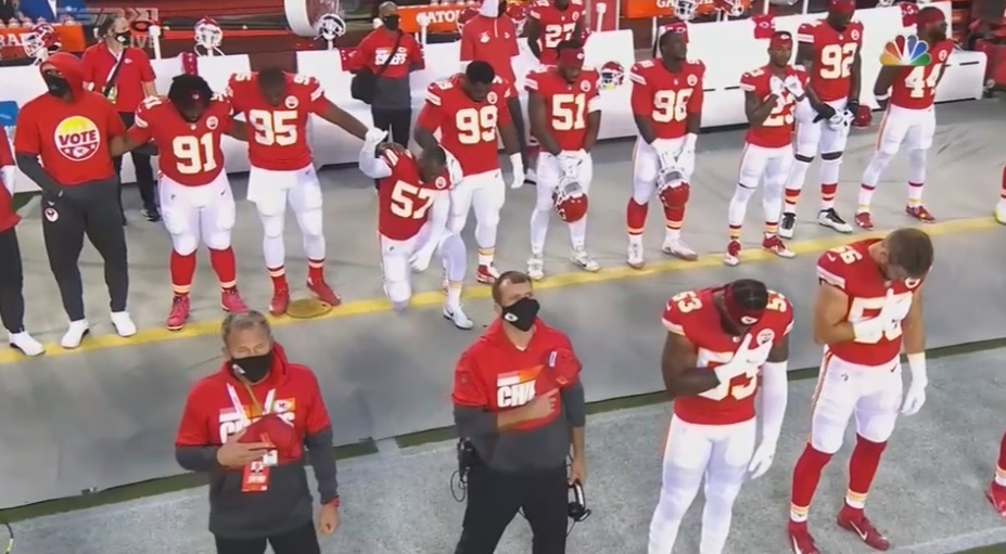 Los jugadores de Houston decidieron permanecer en el vestidor mientras se escuchaba el himno norteamericano, caso contrario a los Chiefs, de los cuales solo Alex Okafor puso una rodilla en tierra.