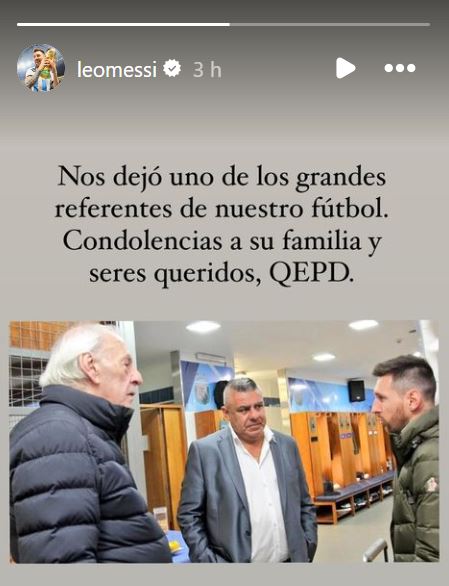 Por su parte, el delantero del Inter Miami publicó un breve mensaje en su cuenta de Instagram, en el que escribió: "Nos dejó uno de los grandes referentes de nuestro futbol. Condolencias a su familia y seres queridos. QEPD".