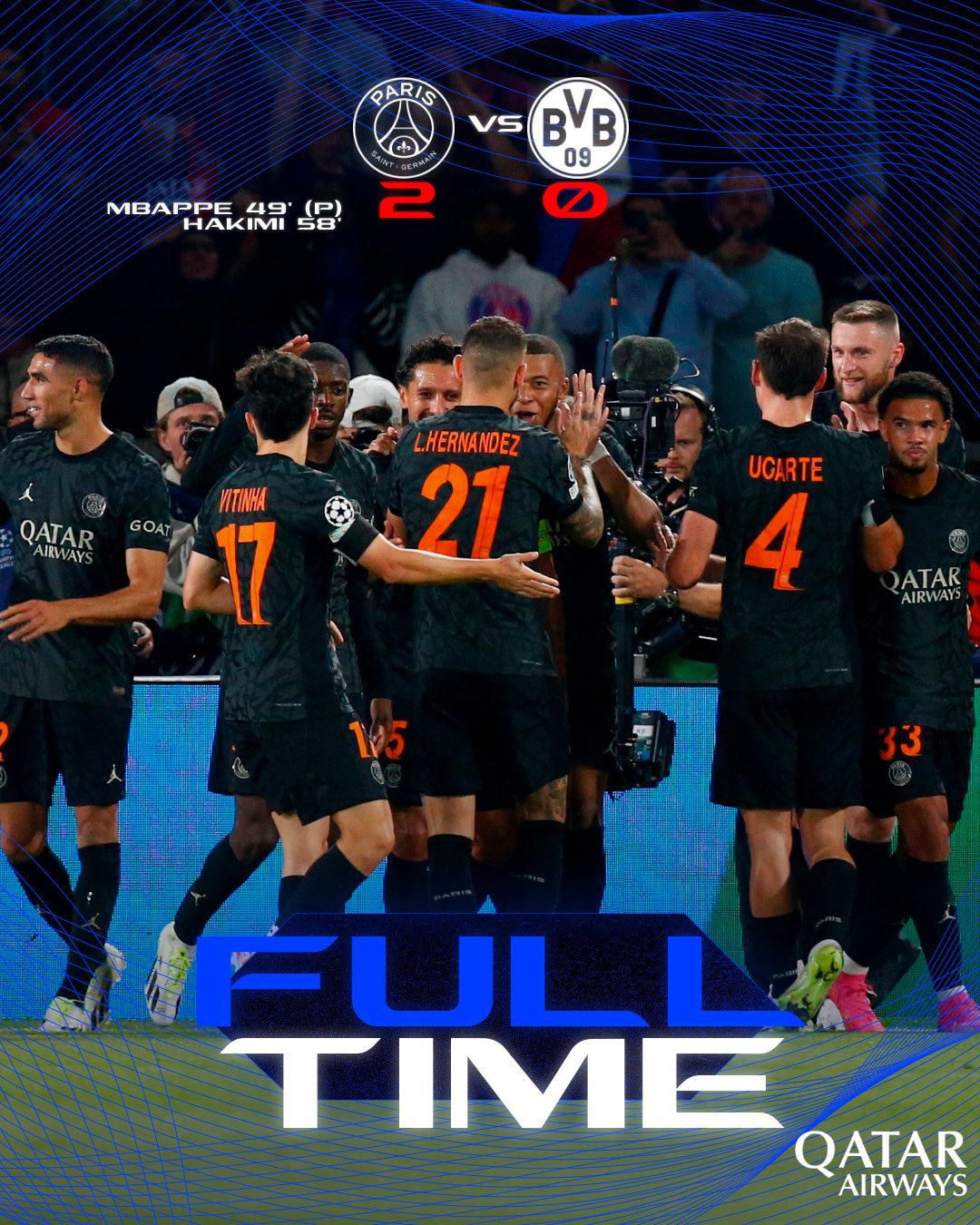 El París Saint-Germain 'versión Luis Enrique' no dejó margen para las dudas en su estreno europeo, con triunfo 2-0 ante el Borussia Dortmund este martes en el Parque de los Príncipes y liderato del temible Grupo F, completado por AC Milan y Newcastle, que empataron sin goles.