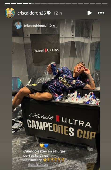 A través de sus historias de Instagram, Calderón publicó una fotografía en la que se le ve en los festejos del América con todo y una corona, misma que acompañó del texto: "Así nomás. Club América. Con el más grande".