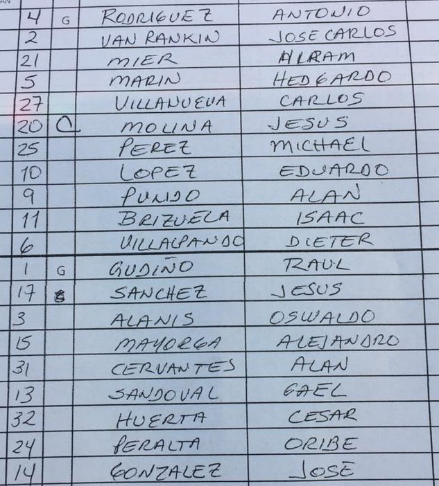 Se presentan las alineaciones de ambos clubes. Oribe Peralta, reciente fichaje estelar, no está entre los once titulares del Rebaño Sagrado. Toño Rodríguez sí aparece en el cuadro que manda Tomás Boy.