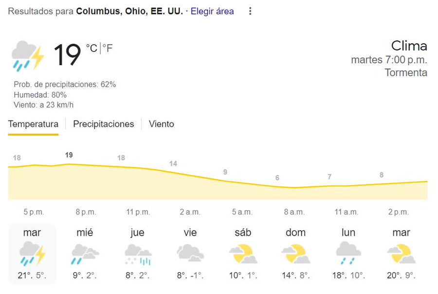¿Cuál es el pronóstico del clima en Columbus, Ohio?