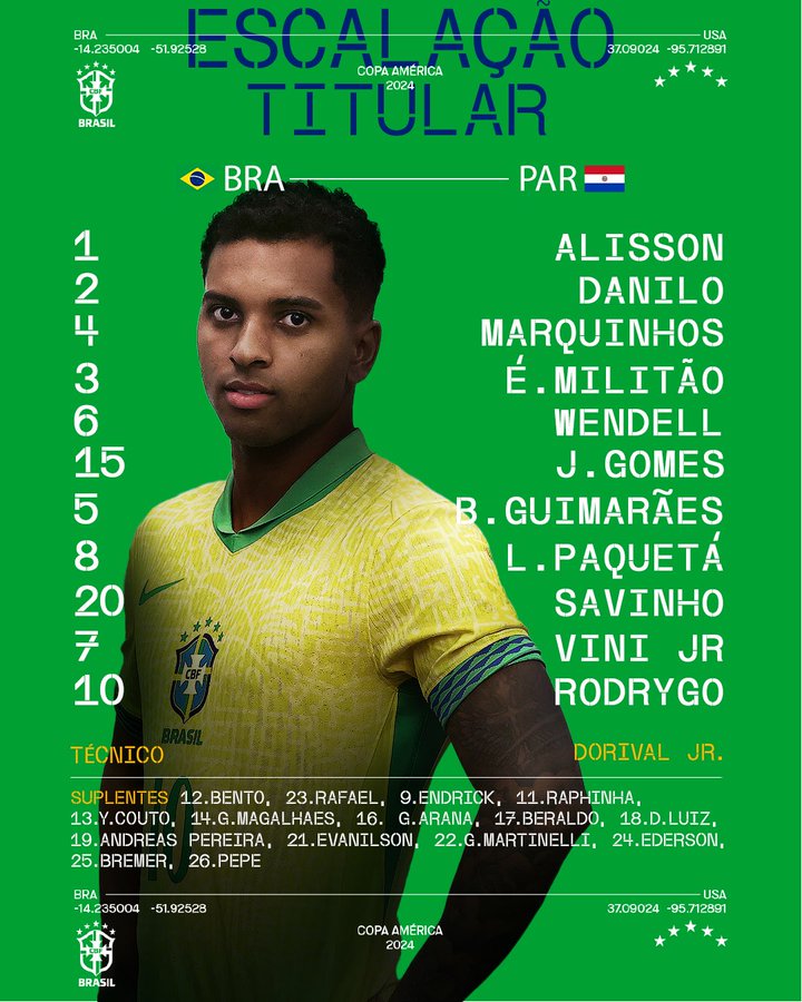 Tras un decepcionante empate 0-0 en el debut ante Costa Rica, Brasil sacó a Raphinha y en su lugar entrará Savinho para jugar este viernes frente a Paraguay por la segunda fecha del Grupo D de la Copa América 2024.