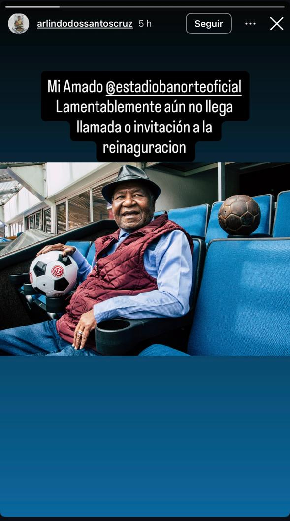 Mediante sus redes sociales, el delantero brasileño compartió una historia donde se puede apreciar a él sentado en uno de los palcos del Estadio Banorte. Esto acompañado del siguiente mensaje: “Mi amado Estadio Banorte, lamentablemente aún no llega llamada o invitación a la reinauguración”.