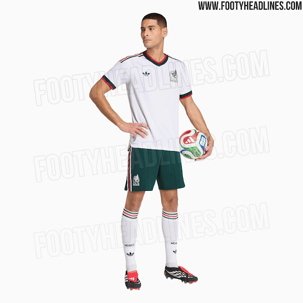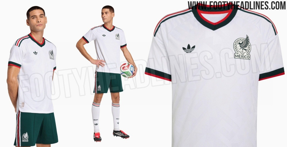 El sitio especializados en artículos deportivos, Footy Headlines, reveló las fotografías oficiales con las que la marca alemana pondrá a la venta la playera de visitante de la Selección Mexicana, con base en color blanco y tenues vivos en verde y en rojo, además de un patrón termosellado.