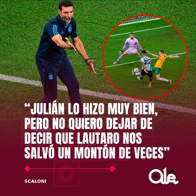 Es una realidad que Lautaro Martínez no ha estado fino frente a la portería, ha fallado oportunidades claras contra Polonia y este sábado ante Australia, sin embargo, su técnico Lionel Scaloni lo respalda.