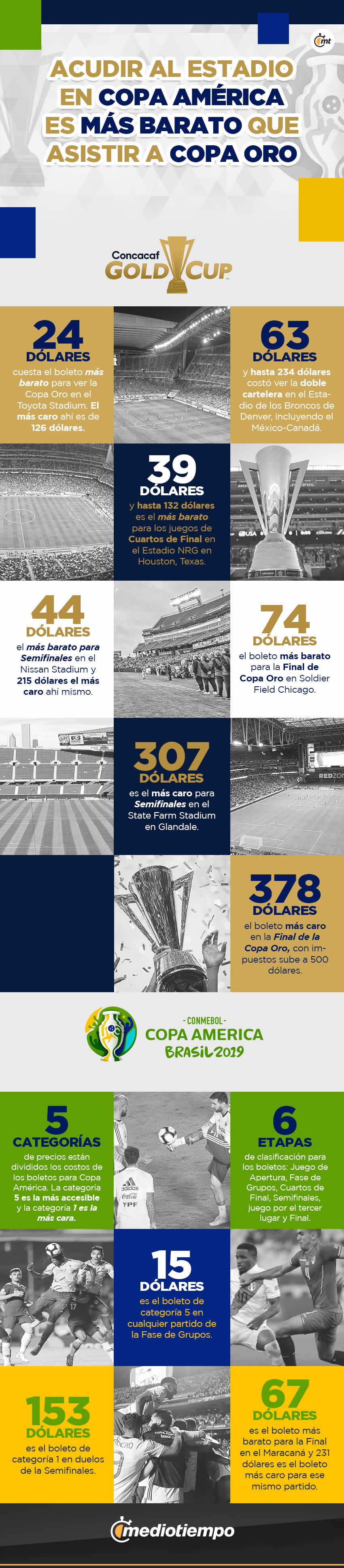 El costo de las entradas para el torneo de Concacaf es considerablemente más alto que el de Conmebol aunque en Fase de Grupos de Copa Oro el comité organizador ofreció la ventaja de que en algunas jornadas los aficionados tienen derecho a dos partidos por el precio de uno.