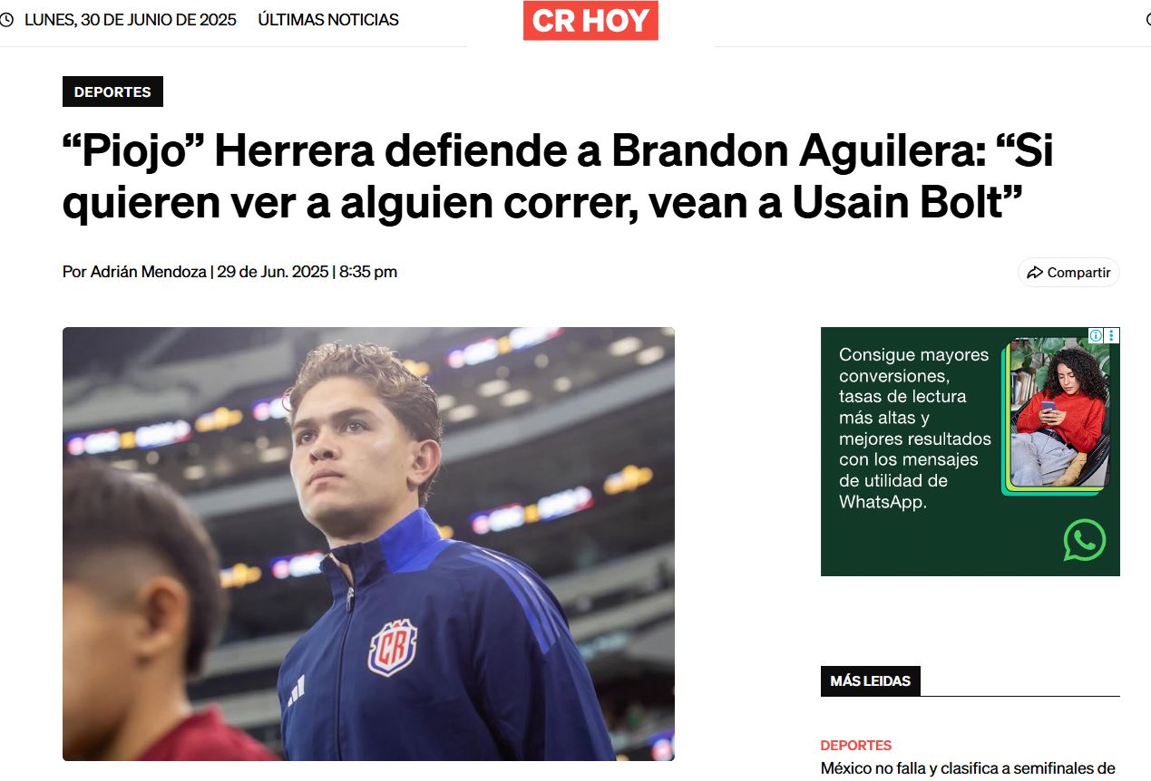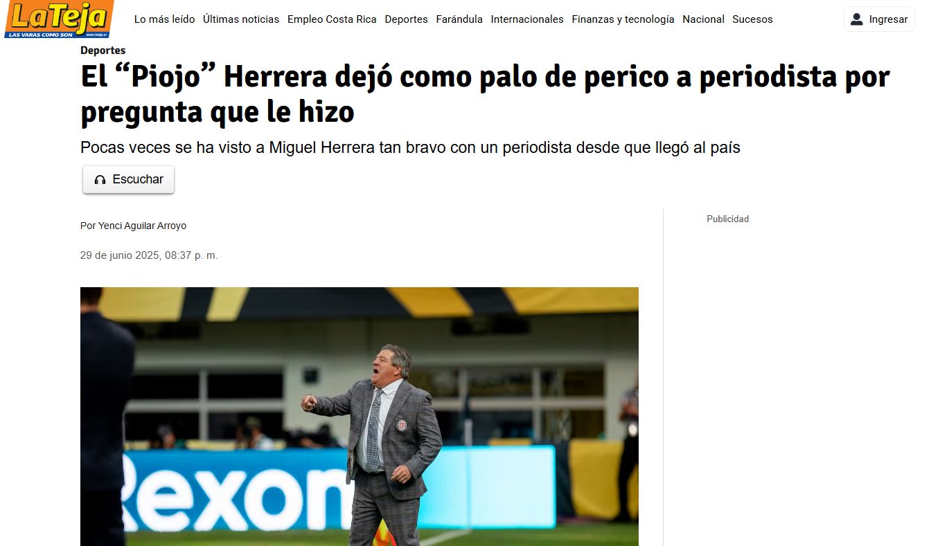 El medio La Teja se refirió a la tensa conferencia de prensa que ofreció el Piojo y en donde se le cuestionó por Aguilera. "Miguel Herrera, técnico de la Selección Nacional, se mostró como pocas veces lo hemos visto en Costa Rica y se enojó con un periodista. (...) A Herrera no le hizo nada de gracia que le tiraran a Brandon", detalló.