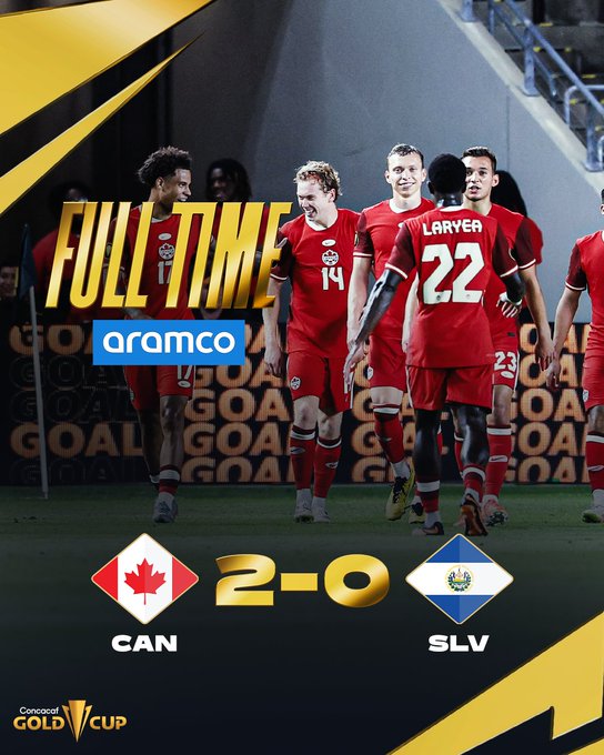 Al igual que México y Estados Unidos, la Selección de Canadá también terminó invicto la Fase de Grupos en la Copa Oro luego de vencer de forma tranquila 2-0 a la Selección de El Salvador y así amarrar el liderato del Grupo B.