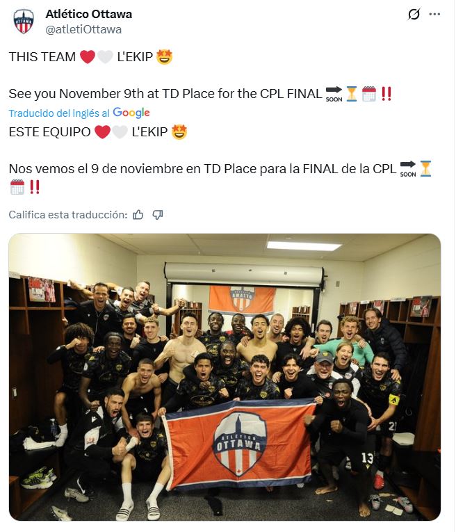 El duelo por el título de la Canadian Premier League está programado para el próximo domingo 9 de noviembre, día en el que el Atlético Ottawa, que se fundó en enero de 2020, disputará su segunda Final de liga (la anterior fue en 2022).