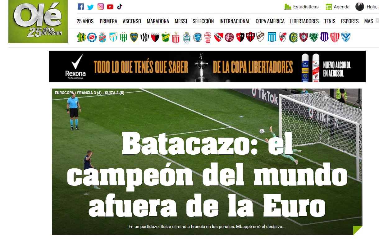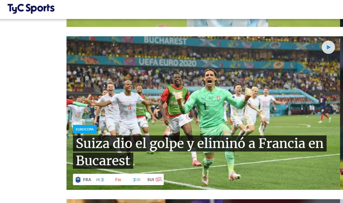 La gran sorpresa de la Eurocopa se dio en el enfrentamiento entre Francia y Suiza, siendo esta última la vencedora en una dramática tanda de penales en duelo de los Octavos de Final de la competición.