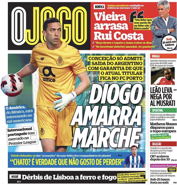 De acuerdo al rotativo O'Jogo, el arquero argentino pidió nuevamente su salida de los Dragones al verse totalmente relegado por el titular Diogo Costa, quien apenas le permitió jugar cuatro partidos en los últimos meses, situación que lo alejó de las convocatorias de Lionel Scaloni.
