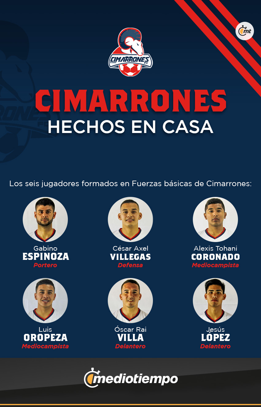 De acuerdo a los datos que se presentan en la Liga MX, seis jugadores registrados por Cimarrones fueron forjados en sus fuerzas básicas, lo que evidencia que las bases del club son sólidas pensando en luchar por un sitio en Primera División. Solo una muestra del gran trabajo que se hace en el club.