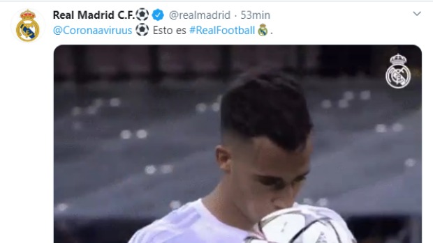 Pero eso no fue todo, pues también postearon "Coronaavirus Esto es #RealFootball", junto a una fotografía de Lucas Vázquez, futbolista de la actual plantilla al que la afición cuestiona por su rendimiento en últimas fechas.