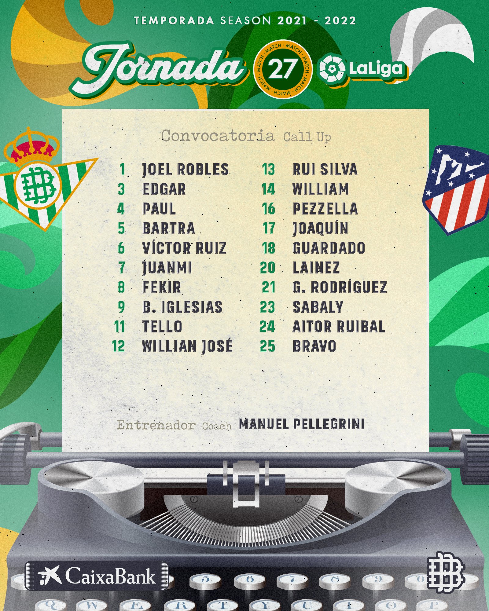 Una nueva oportunidad se le presenta al mexicano Diego Lainez, quien fue incluido en la nómina de 20 futbolistas considerados por el entrenador Manuel Pellegrini para el choque entre el Betis y Atlético de Madrid.