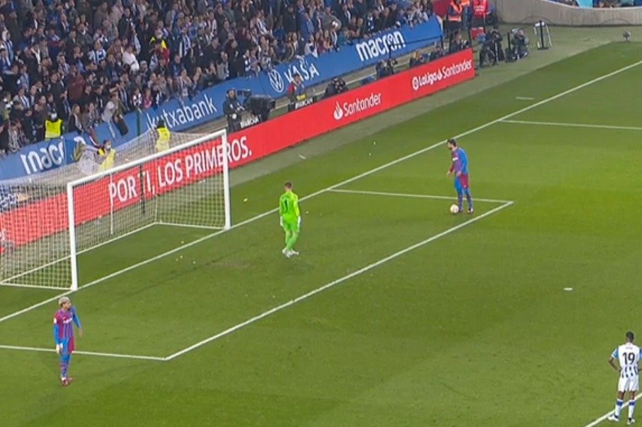 Esto ocurrió en la visita del Barça a la Real Sociedad, cuyos aficionados le dieron un muy hostil recibimiento al defensa español, que fue abucheado descomunalmente al saltar al campo de juego, además de insultos y otras "cortesías" dedicadas, pero las cosas se pusieron un poco más violentas en el complemento.