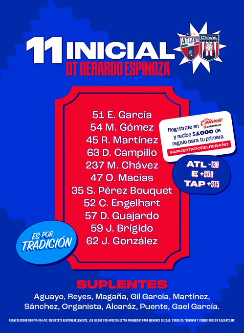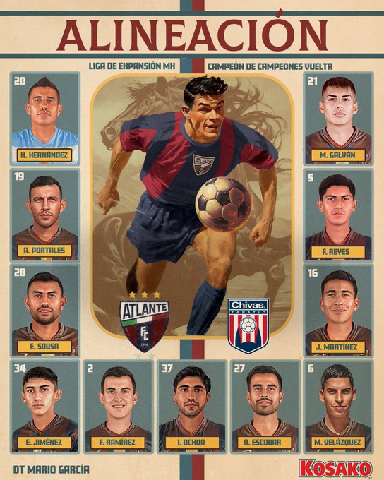 Para esta ocasión Mario García decidió moverle a su once con tres cambios. Rolando González no estará por expulsión, aunado a que Omar Soto y César López estarán en el banquillo de suplentes. Atlante está abajo 3-1 en el marcador global del Campeón de Campeones 2023.
