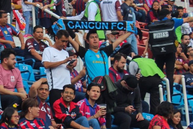 Aunque estaban lejos de casa y eran minoría, los aficionados celestes no dejaron de portar con orgullo sus bufandas del Cancún FC.