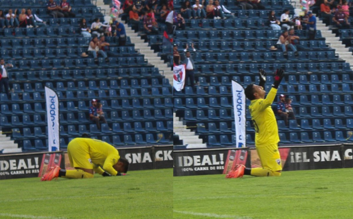 "Gansito", portero y capitán del Atlante, anotó el 2-0 de penal y agradeció con las manos al cielo.