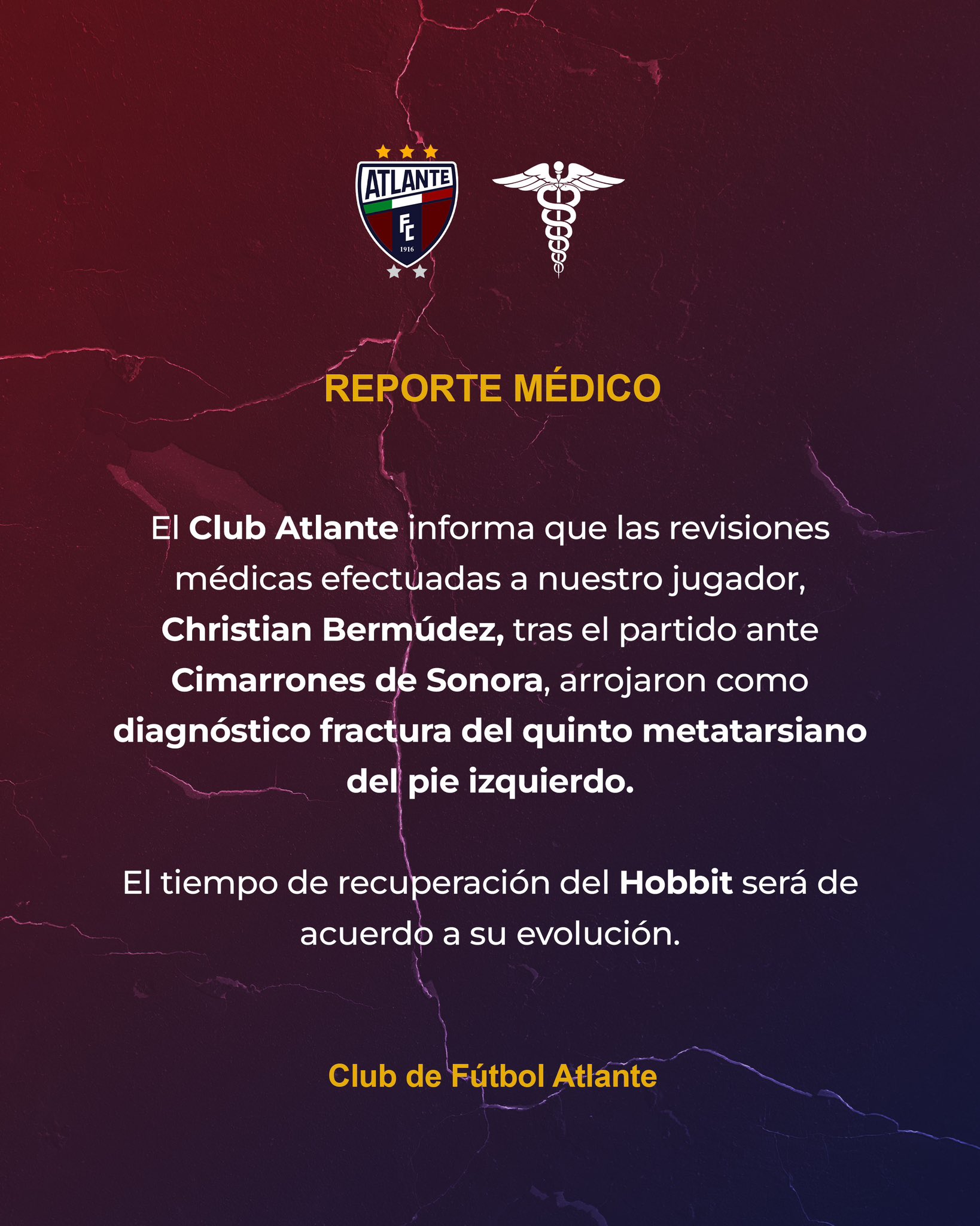Atlante cayó 2-0 en la Ida de los Cuartos de Final en el Apertura 2023 de la Liga Expansión MX y por si fuera poco, se dio a conocer que Christian Bermúdez sufrió una fractura en el quinto metatarsiano del pie izquierdo.