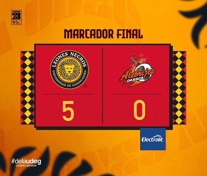 Los Leones Negros ya corren en la selva de la Liga de Expansión, al sumar su segunda victoria al hilo al aplastar 5-0 a los Alebrijes de Oaxaca, como parte de la Jornada 3 del Apertura 2023.