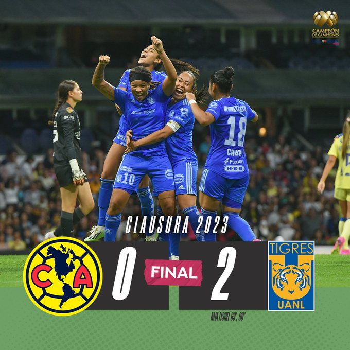 La goleadora de Tigres del Clausura 2023 Mia Fishel logró abrir el marcador al minuto 70 después de aprovechar una mala salida de las azulcremas. Posteriormente, la estadounidense utilizó un disparo cruzado y pegado al poste para fulminar el arco rival y darle la ventaja a su escuadra.