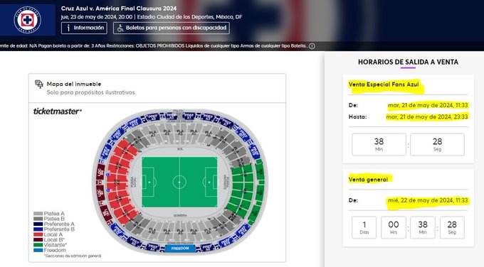 De acuerdo con la información publicada en el sitio web de Ticketmaster, los boletos para la Final de Ida tendrán dos etapas de venta: Venta Especial Fans Azul y la Venta General.