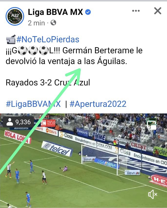 "¡Goool! Germán Berterame le devolvió la ventaja a las Águilas", escribió la Liga MX en sus redes sociales para anunciar el tanto de la victoria de Monterrey sobre la Máquina Celeste.