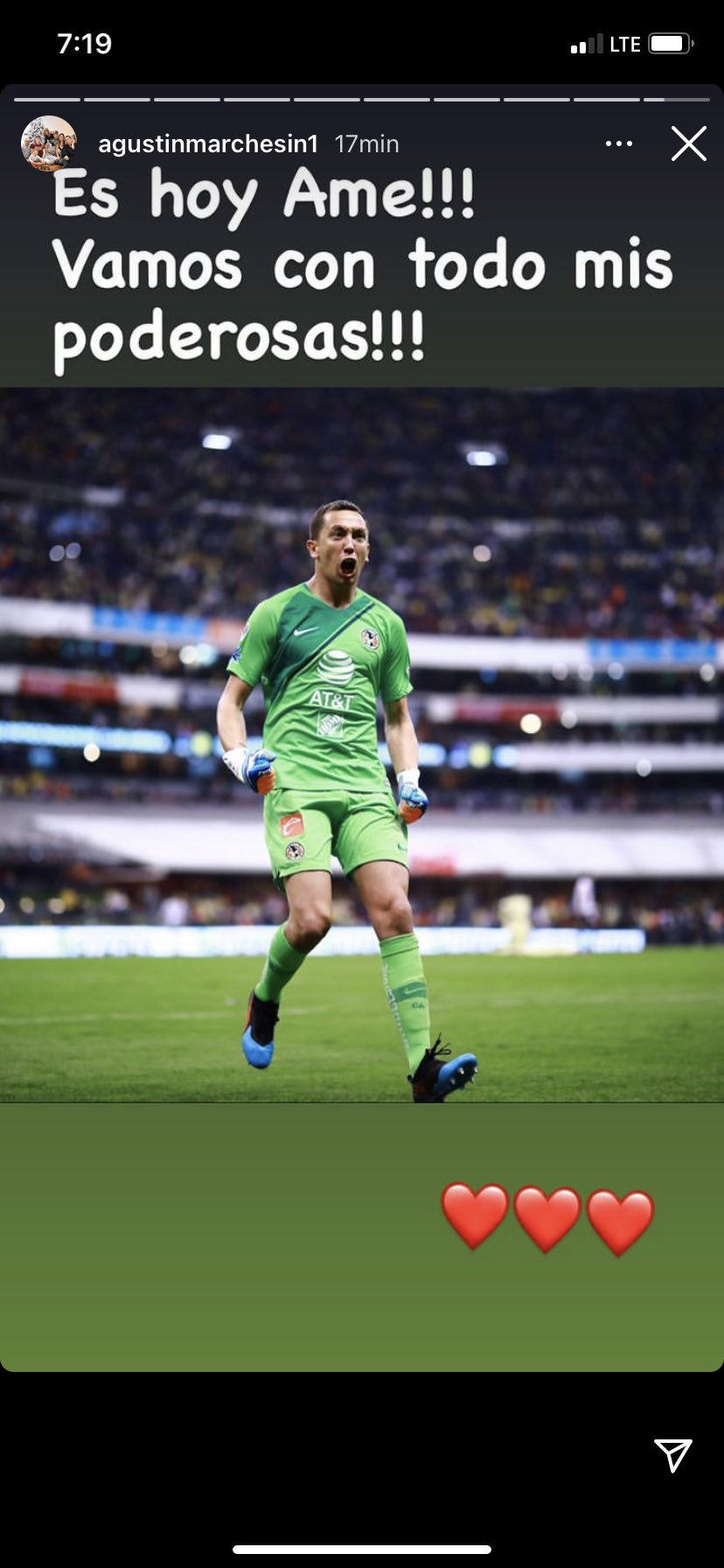 Se trata de Agustín Marchesín, quien en su cuenta de Instagram mostró su solidaridad con su antiguo equipo. "¡Es hoy. Ame" ¡Vamos con todo, mis poderosas", escribió el hoy guardameta del Porto de Portugal.
