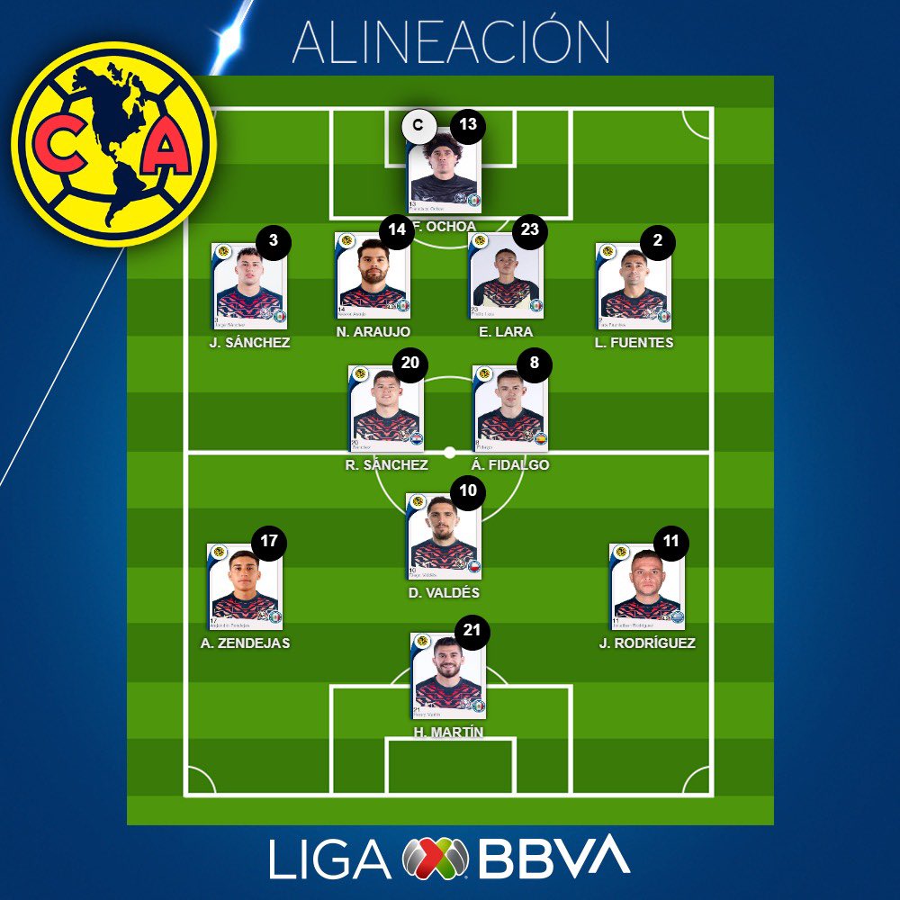 En el medio campo Richard Sánchez con Fidalgo en la contención y por los costados el Cabecita Rodríguez y Alejandro Zendejas y adelante Henry Martín con Diego Valdés.