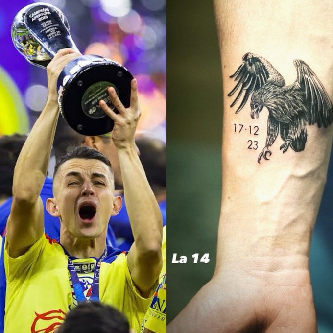 El español se tatuó un águila en el brazo con la fecha en la que América derrotó a Tigres en la Final del Apertura 2023 (17 de diciembre del 2023)