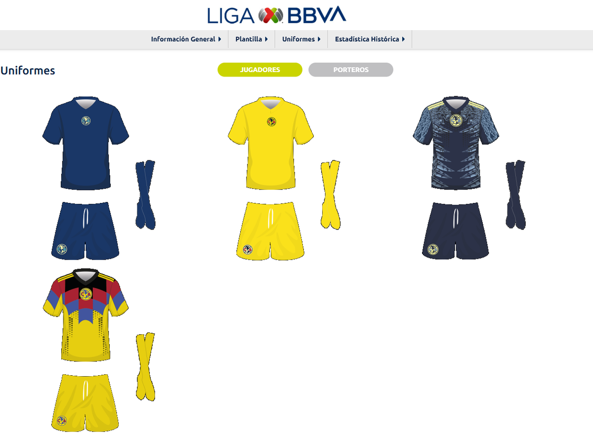 En la página oficial de la Liga MX, todos los equipos tienen registrados los uniformes que utilizan para sus partidos, dado que deben estar dados de alta para poder portarlos (incluidos los de portero) y América agregó dos indumentarias nuevas a su apartado en el sitio.