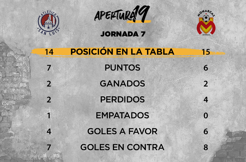 Ambas escuadras llegan a la Jornada 7 del Apertura 2019 con un triunfo, destacando el del cuadro michoacano, que se impuso a los Pumas 2-0, mientras que los potosinos sumaron tres puntos al vencer 2-1 a los Tiburones Rojos en el puerto jarocho.