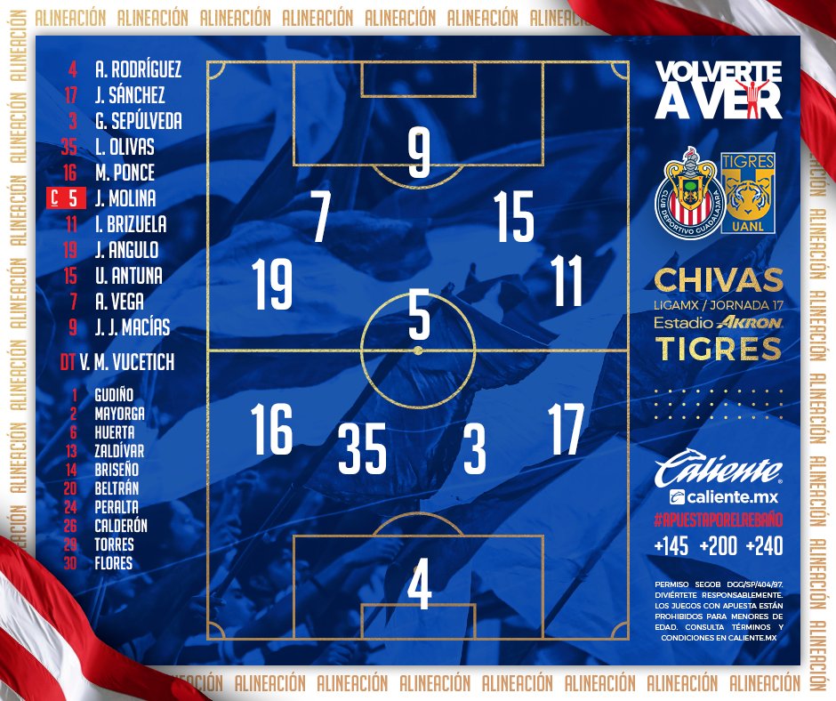 José Antonio Rodríguez (P); Jesús Sánchez, Gilberto Sepúlveda, Luis Olivas, Miguel Ponce; Jesús Molina, Jesús Ricardo Angulo, Isaac Brizuela; Uriel Antuna, Alexis Vega y José Juan Macías.