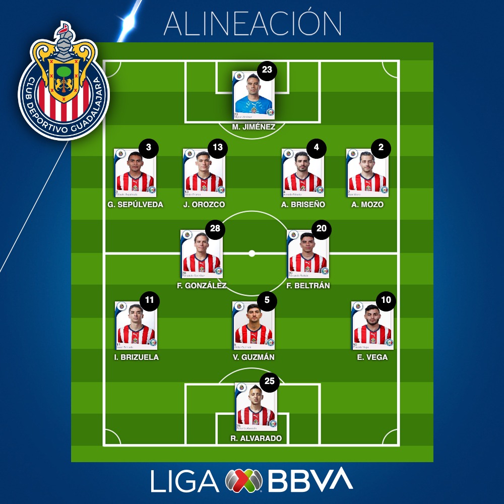 Por parte del Rebaño Sagrado, vuelven a la titularidad Alan Mozo e Isaac Brizuela, jugadores que estuvieron presentes en la Vuelta ante América, pero salieron desde el banco de suplentes.
